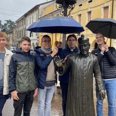 Ende Oktober haben sich P. Bartek und P. Sebastian Büning, Rektor der Kommunität in Burlo, gemeinsam mit vier Messdienern auf den Weg nach Italien gemacht. Auf dem Programm stand unter anderem ein Besuch in Innsbruck, in Brescello, dem Dorf von Don Camillo und Peppone und natürlich die Erkundung des antiken und kirchlichen Roms. Übernachtet hat die Gruppe in Marino im Jugendzentrum der Oblaten in Italien, unweit von Rom. Hier trafen sie auch auf einen jungen Mann aus Deutschland, der zurzeit ein Jahr zur Berufungsorientierung macht. Der Schwerpunkt der Reise war u.a. die Oblatenfamilie und die Internationalität der Oblaten kennenzulernen. Daher gab es auch ein gemeinsames Mittagessen im Generalhaus der Oblaten und einen Besuch mit leckerer Pizza in unserem Scholastikat in Vermicino. Es war für die jungen Menschen eine sehr gute Gelegenheit, zu schauen und nachzudenken, wohin Gott sie in ihrem Leben ruft.